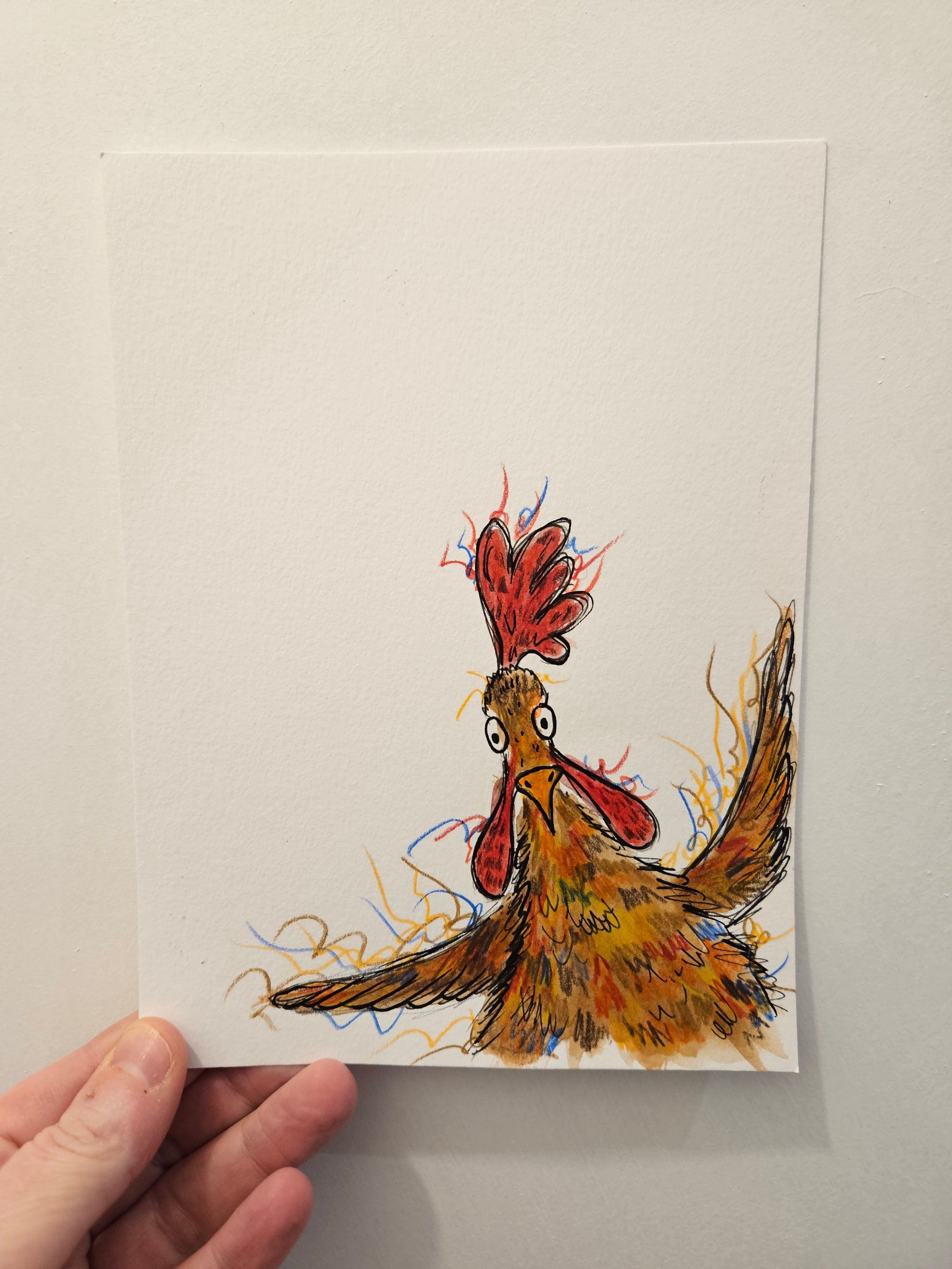 Cynthia the fun loving chicken loves wild parties, champagne and dressing for the occasion. She is first on the dance floor showing her moves to all and often creates quite a scene!