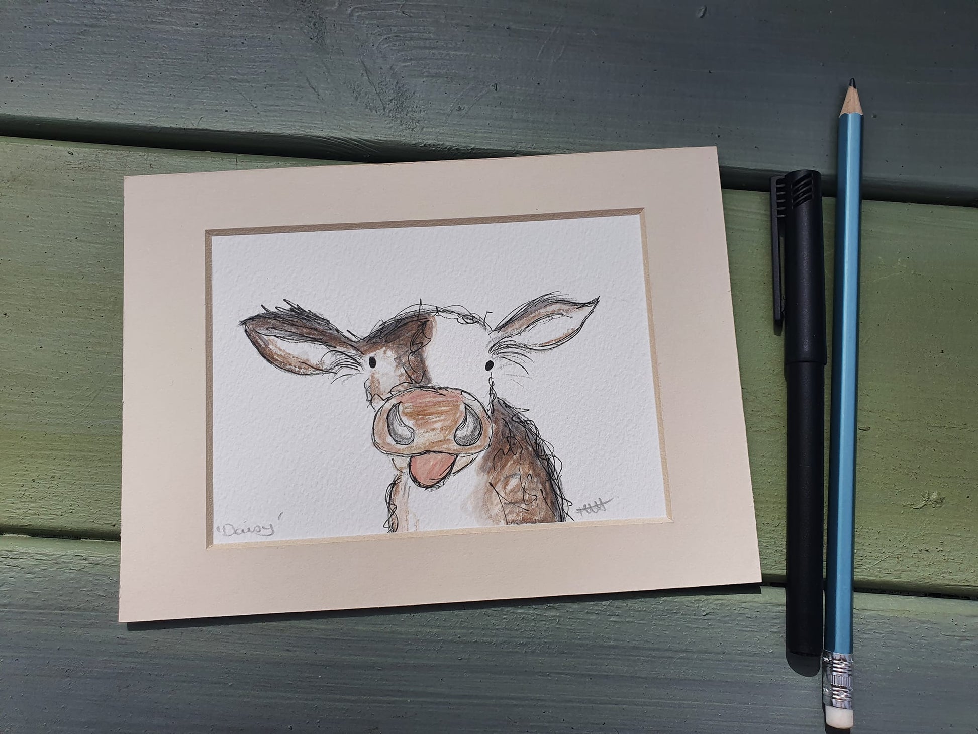 'Daisy' is a mixed media piece including pen, ink and pencils