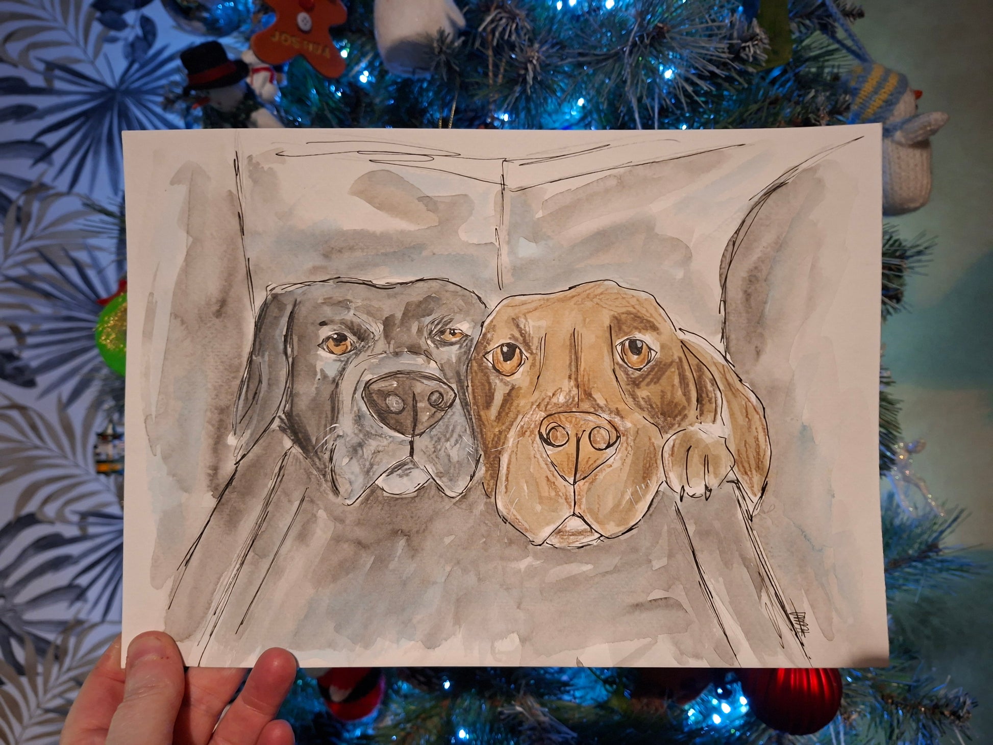 - Dog Illustration- A new dog a day chosen from the photographs I have been sent via Facebook. An A4 original illustration of a dog/s painted using watercolour paints, pen and pencils. Signed and dated.