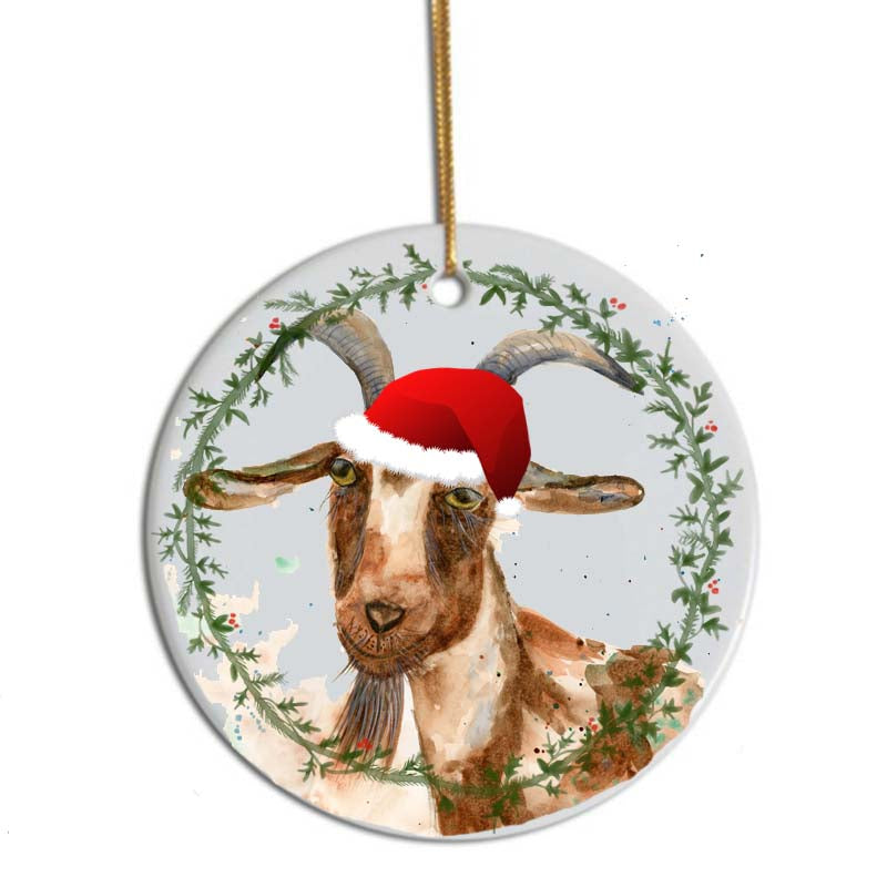 Ceramic Christmas tree decorations featuring my watercolour designs.