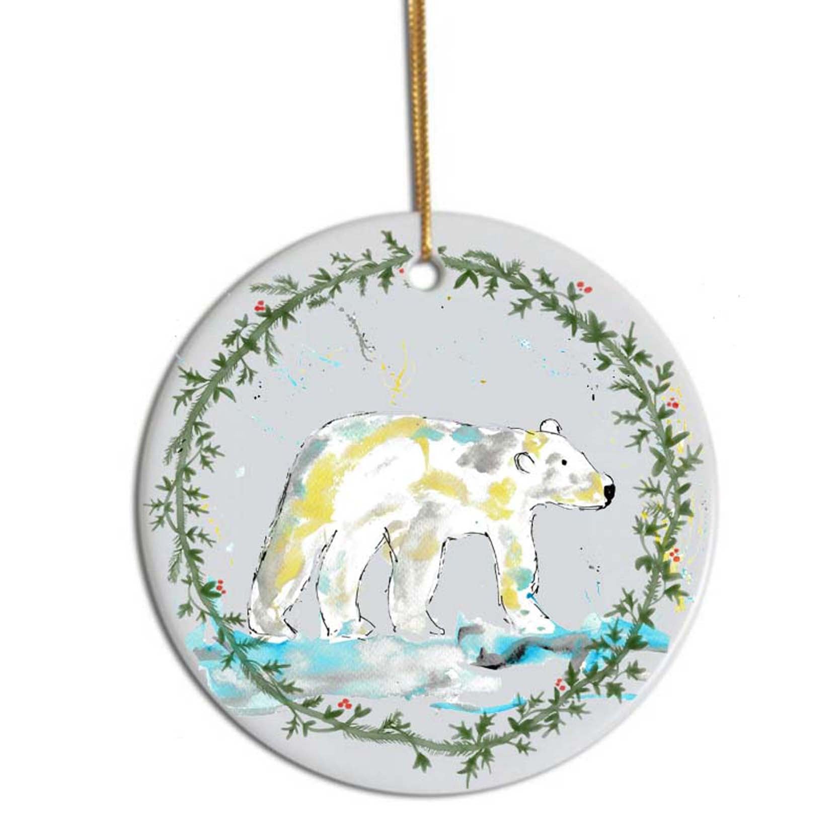 Ceramic Christmas tree decorations featuring my watercolour designs.