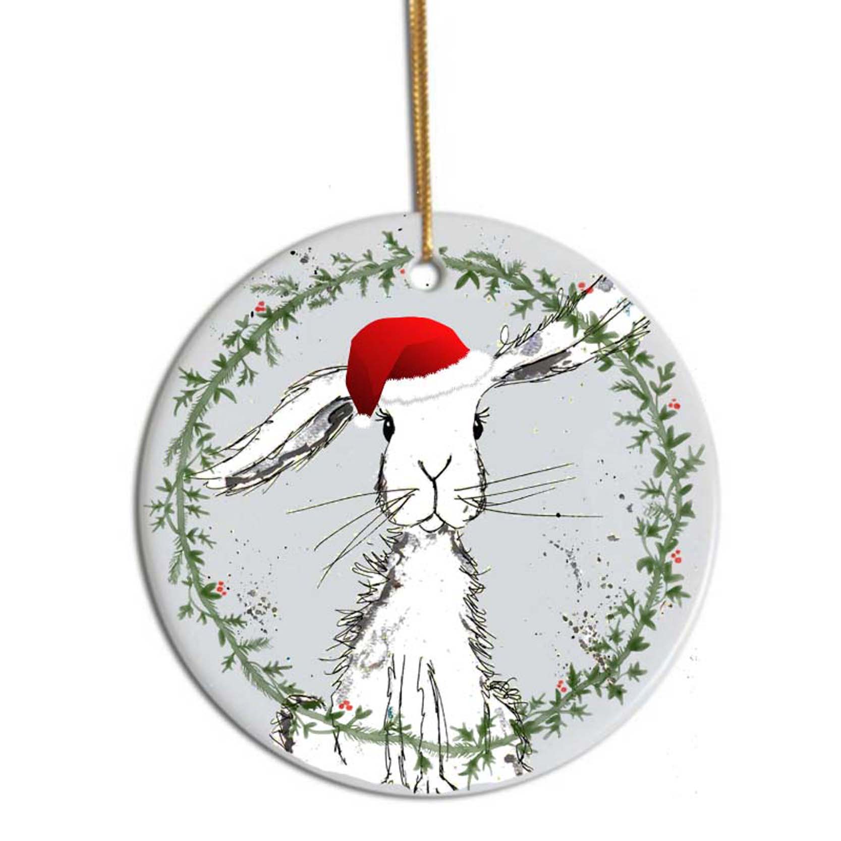 Ceramic Christmas tree decorations featuring my watercolour designs.